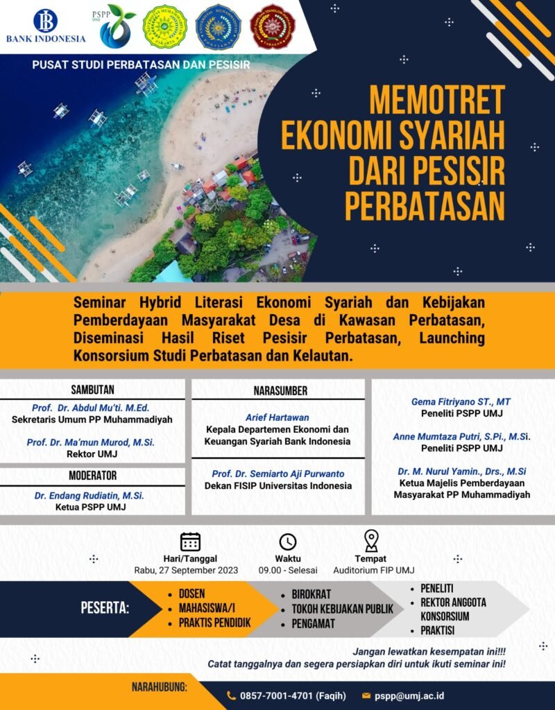 Seminar Hybrid Literasi Ekonomi Syariah dan Kebijakan Pemberdayaan Masyarakat Desa di Kawasan Perbatasan, Launching Konsorsium Studi Perbatasan dan Kelautan.